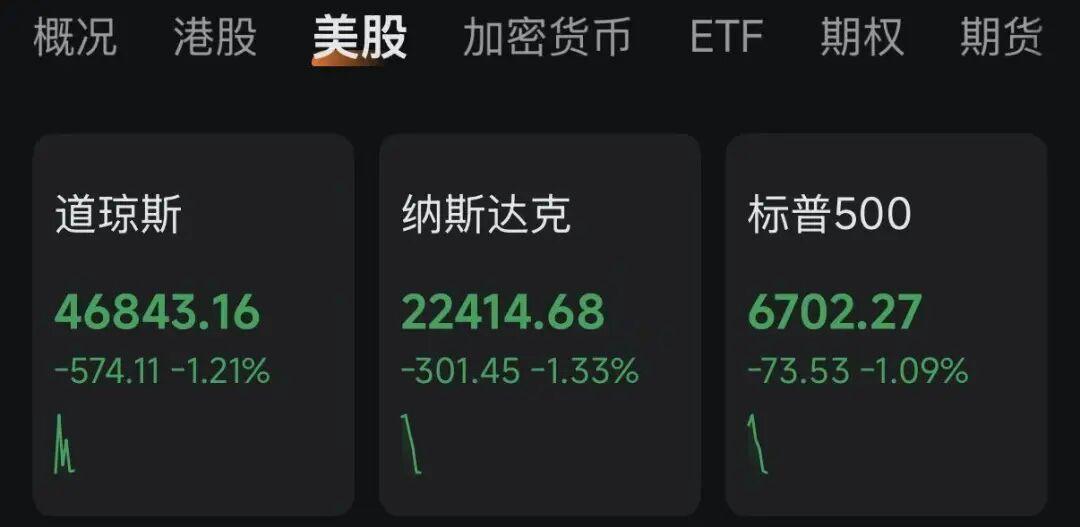 美股方面,三大股指集体低开且跌幅较大,截至发稿,道琼斯指数、纳指与标普500指数均跌逾1%。