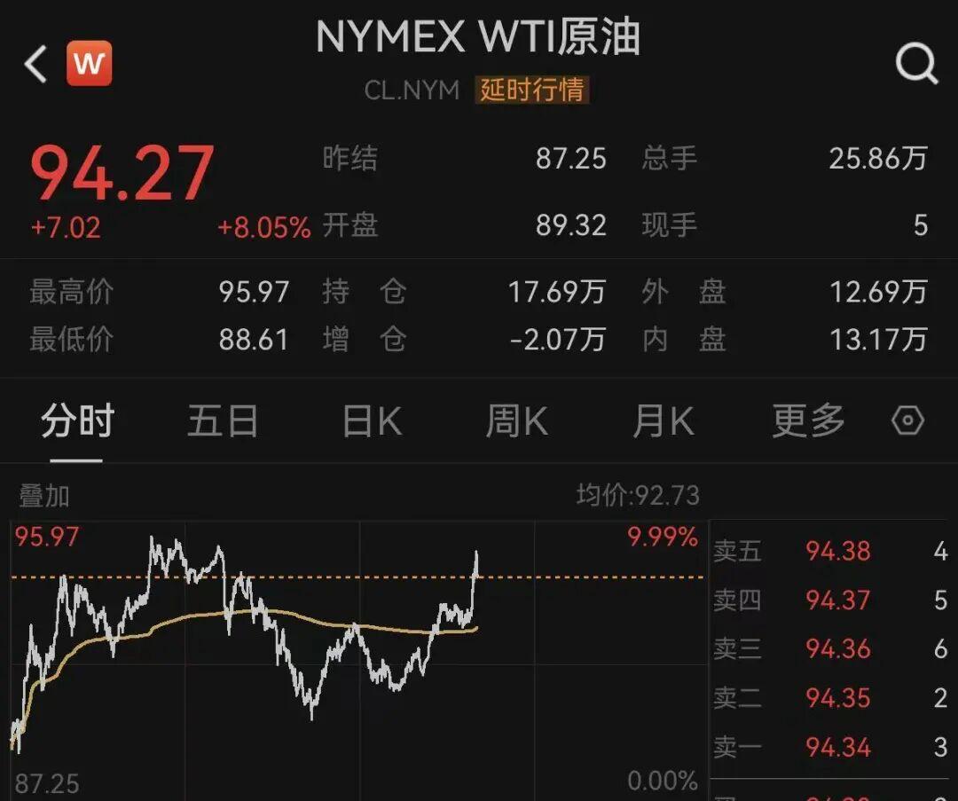 原油方面,WTI原油与布伦特原油直线拉升,截至发稿涨幅均超8%。